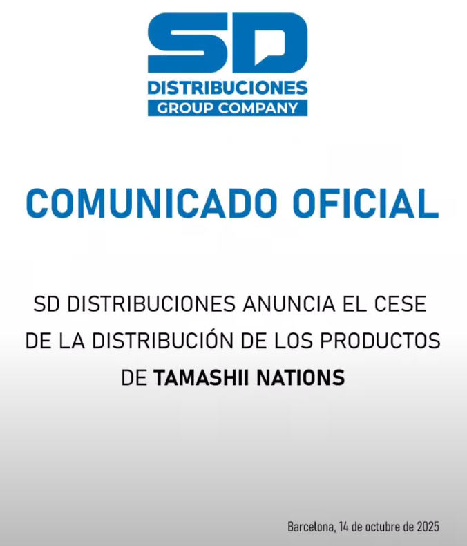 Que el distribuidor oficial de Tamashii Nations desde hace más de trece años, SD Distribuciones, ha roto relaciones con Tamashii y ha dejado de serlo desde principios de octubre de 2025.